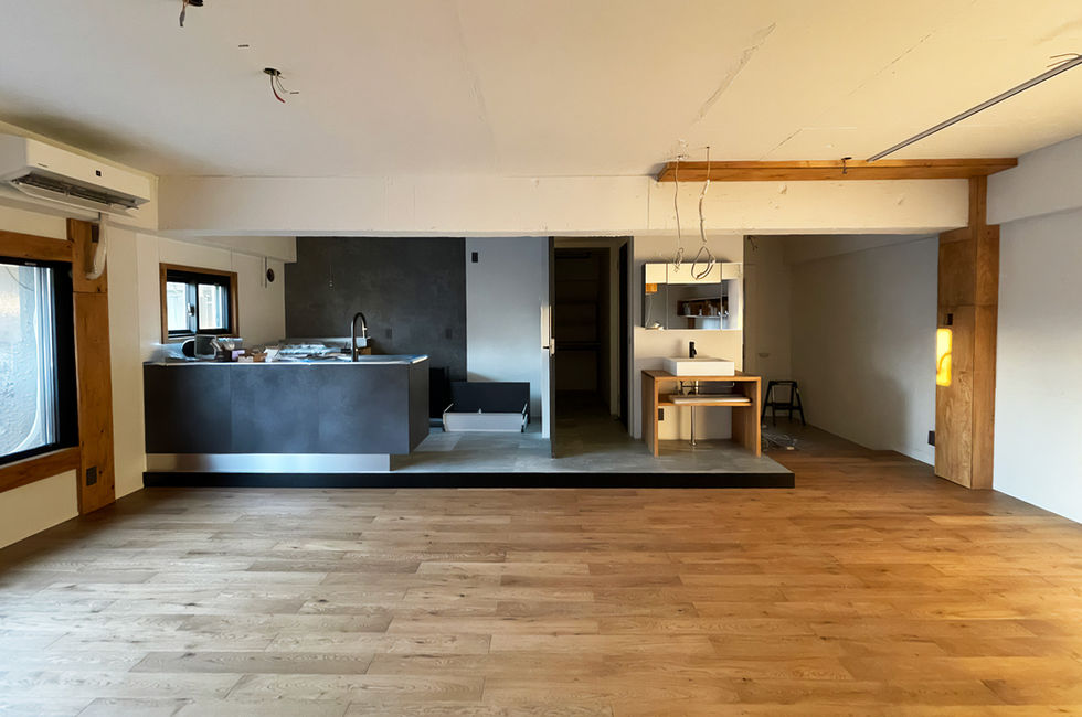 n502自宅兼事務所の改装工事。水道管の老朽化の為、床下から水漏れ。水回りをリフォームすると同時に、全ての間取りも変えフルリノベーション。